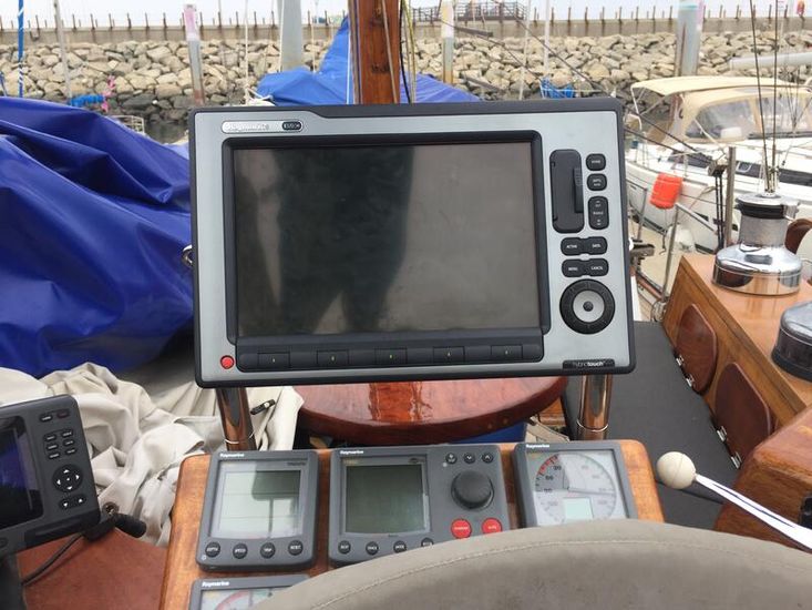 Raymarine, England, Multifunction display E120, , Auto pilot, AIS650, GPS, display instruments; wind, speed, distance, deep, water temp, rudder, compass,, man overboard system,