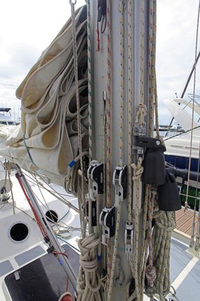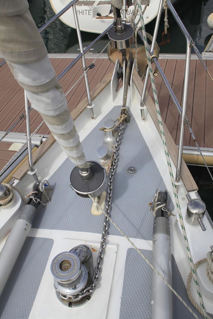 Cutter rigged , sturdy mast and boom . Furling genua and furling jib , fully battened mainsail with slab reefing . sails in good condition .