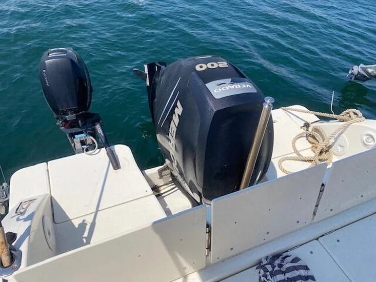 Production date: June 2017. Material: Fiberglass. Engine: Gasoline. Number of engines: 1. Power: 200 hp. Hours of work: 320.